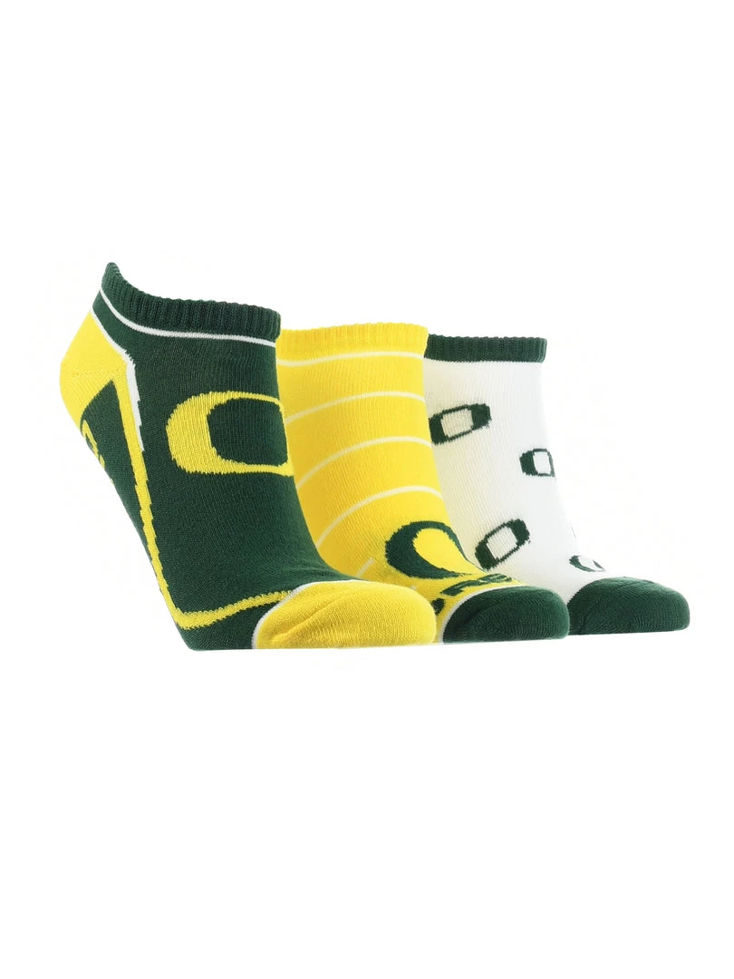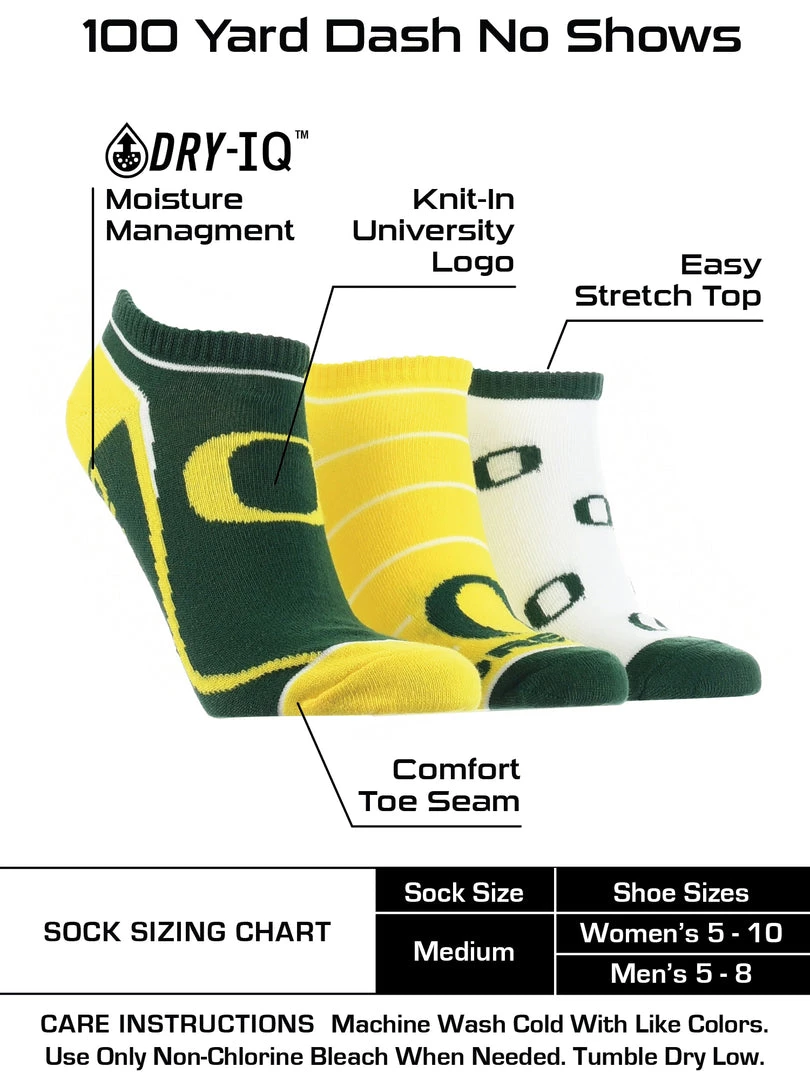 TCK Full Field, No Show Socks come with 3 pairs of comfy socks. Get ready to cheer on your favorite team during the season! Wear these to the tailgate party, working out, or lounge around the house.Offering comfort, breathability, and durability these high quality University of Oregon Ducks socks are an ideal gift for birthdays, stocking stuffers or going back to school. Made of 97% Polyester, 3% Spandex. Gear up for the big game! Go Ducks!