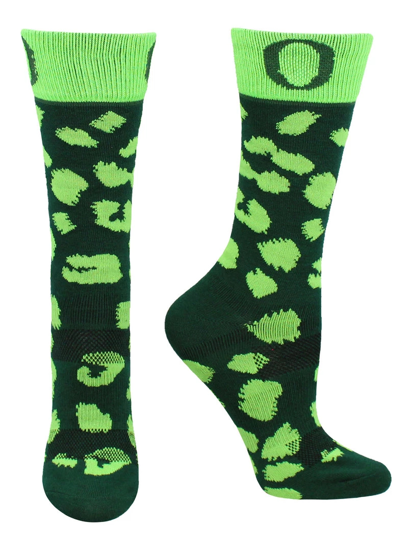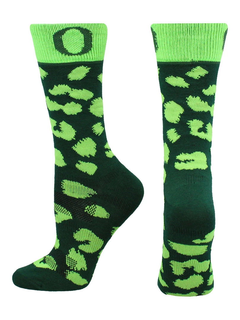 - COMFORT AND BREATHABILITY: These premium quality Oregon Ducks leopard print casual socks provide soft comfort. Moisture management technology pulls moisture and sweat away from skin.