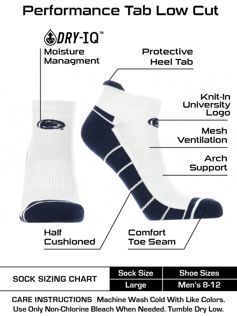TCK No Show Performance Low Cut Socks are the perfect athletic ankle sock. Wear these to the tailgate party, working out, or lounge around the house.Offering comfort, breathability, performance, and durability these high quality University of Penn State Nittany Lions socks are an ideal gift for Father’s Day, birthdays, stocking stuffers or going back to school. Made of 97% Polyester, 3% Spandex. Gear up for the big game! We Are!