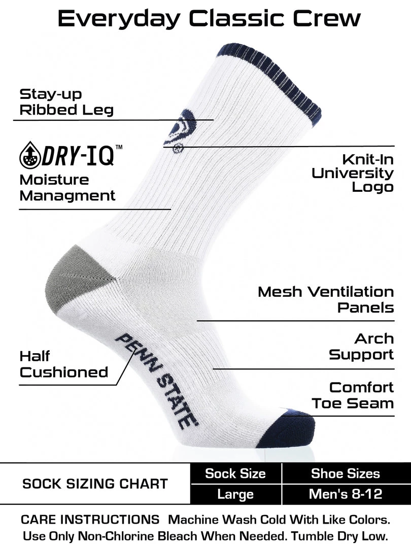 - SOFT AND DRY: These premium quality Penn State Socks provide soft, but durable comfort. Moisture management technology pulls away moisture from skin, while keeping your feet dry.