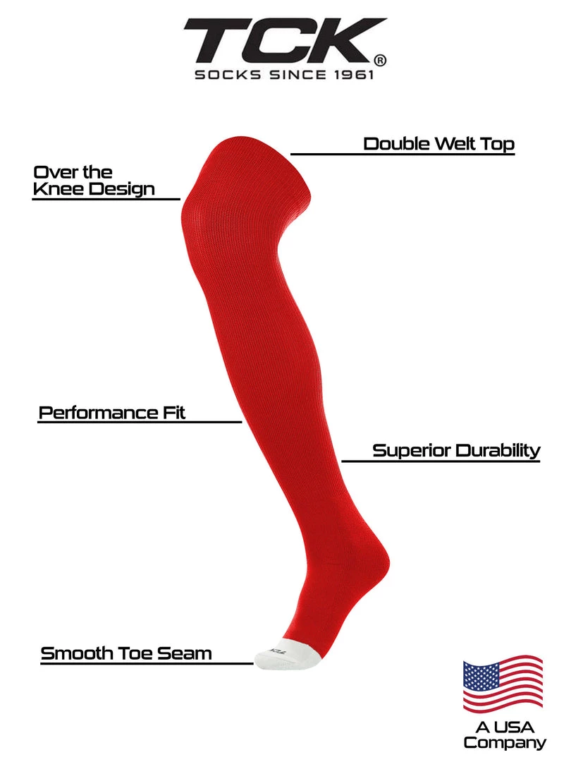 Our TCK Prosport Over the Knee Baseball/Football socks are a must have for your next game, outing, or practice. Designed by the leaders in team athletic socks, the Prosport is the ideal weight and length for athletes, while it also provides maximum performance and durability. TCK was founded in 1961 in North Carolina, where we still operate today. When purchasing TCK products, you can feel proud to support a USA based company that directly supports American employees.