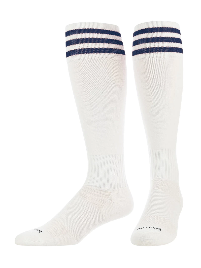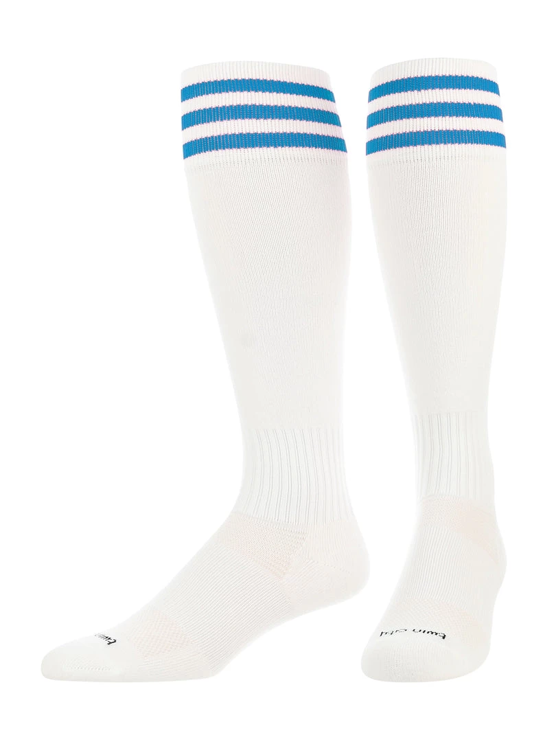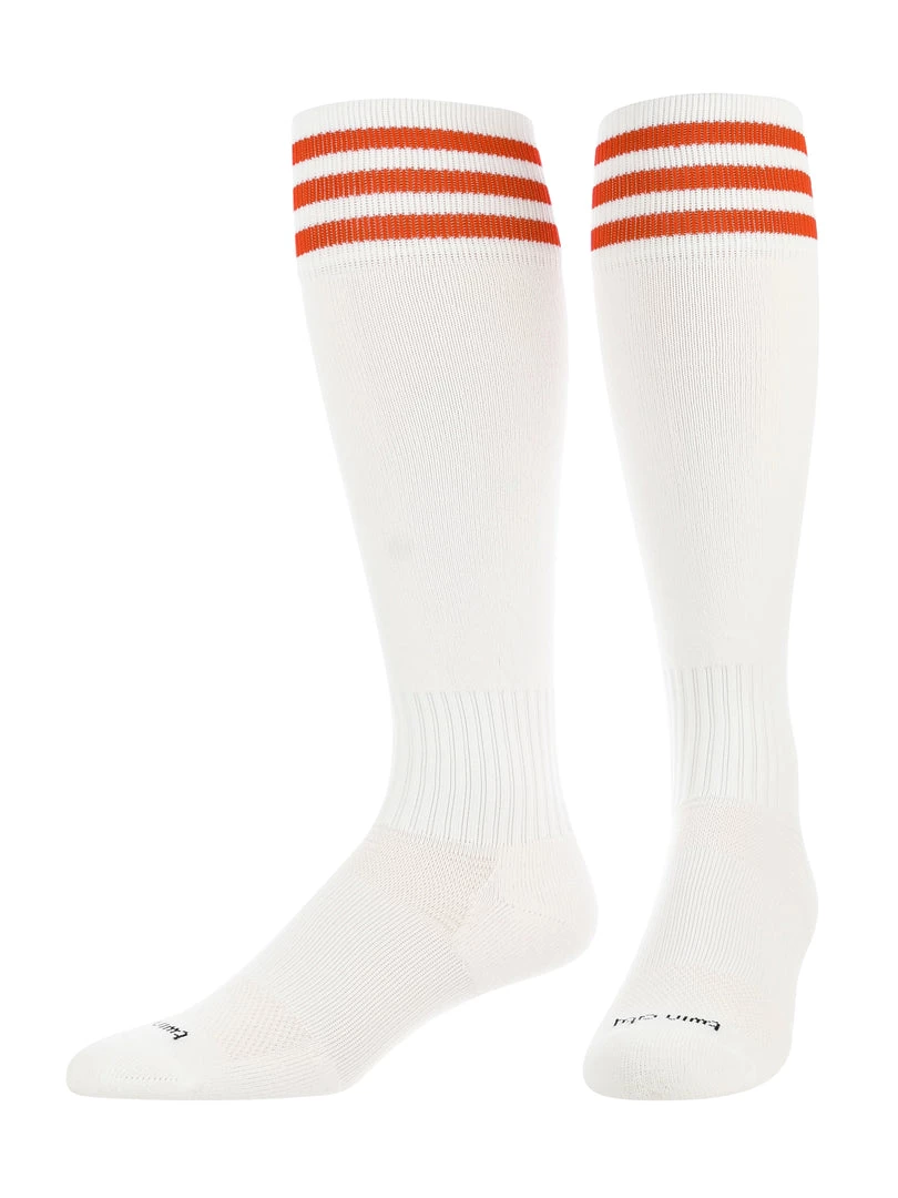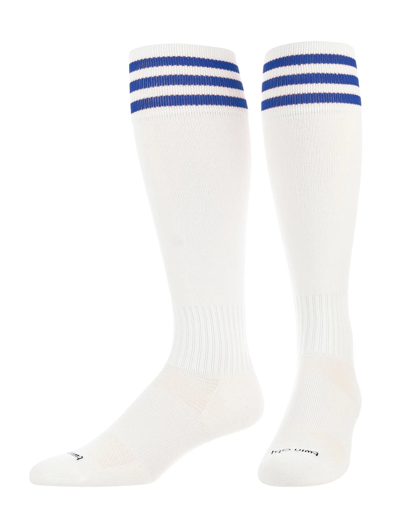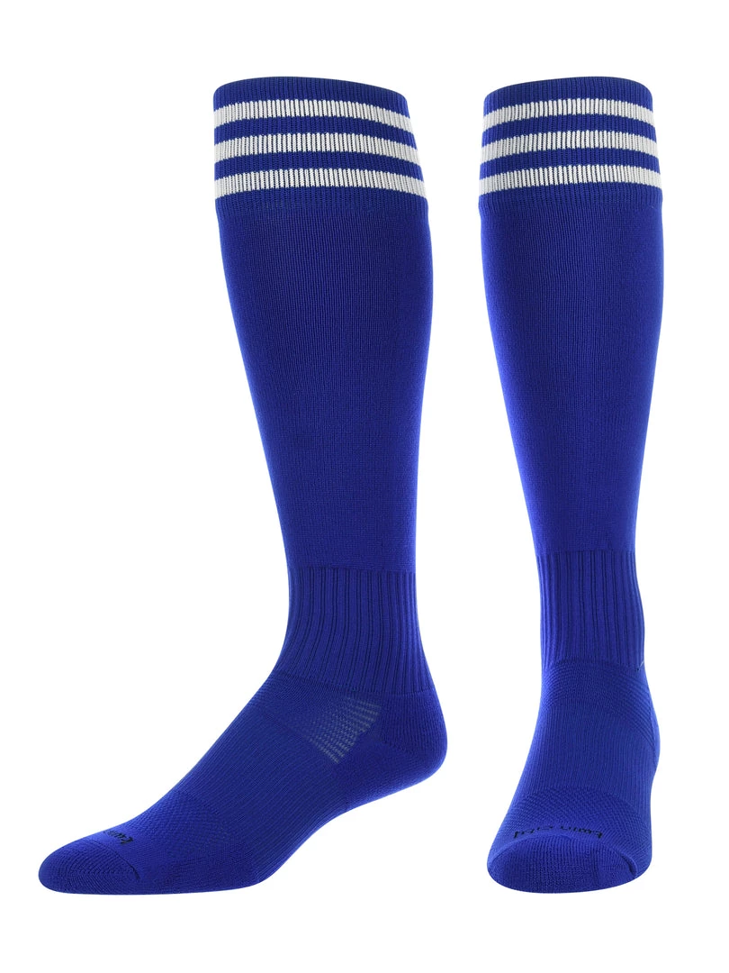 - HIGH PERFORMANCE SOCCER SOCKS: A classic 3 stripe soccer sock, with extra stretch and room for shinguards. Ideal for youth soccer, teenagers playing competitively or adult soccer leagues. Practice and train for games or matches in these TCK soccer socks.