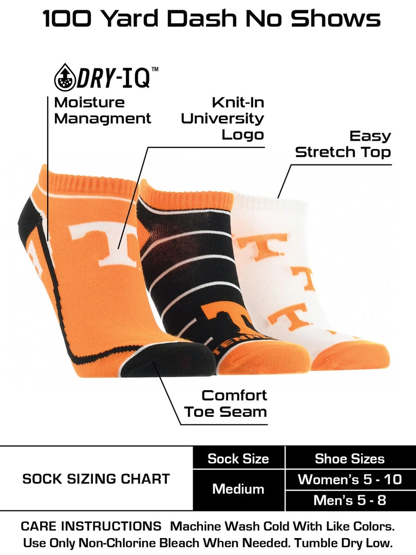 TCK Full Field, No Show Socks come with 3 pairs of comfy socks. Get ready to cheer on your favorite team during the season! Wear these to the tailgate party, working out, or lounge around the house.Offering comfort, breathability, and durability these high quality University of Tennessee Volunteers socks are an ideal gift for birthdays, stocking stuffers or going back to school. Made of 97% Polyester, 3% Spandex. Gear up for the big game! Go Vols!
