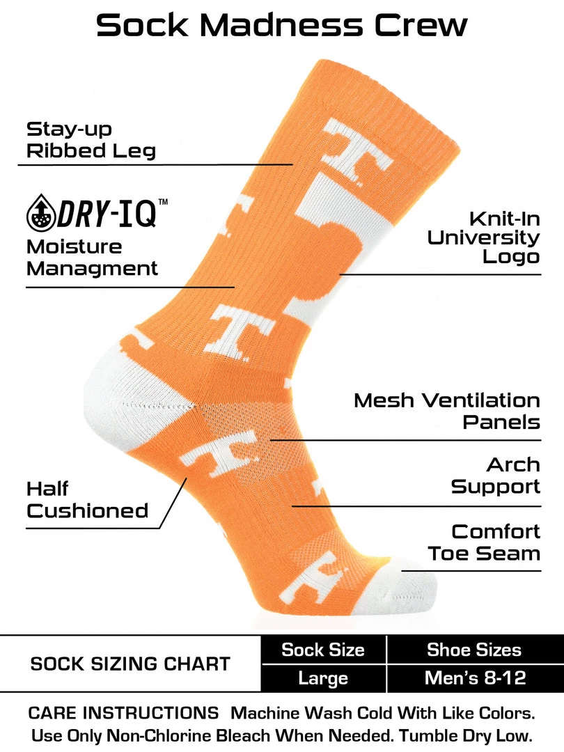 - COMFORT AND BREATHABILITY: These premium quality Tennessee Socks provide soft comfort. Mesh panel ventillation above the foot allows for proper air flow. Keeping the feet dry. Moisture management technology pulls away moisture from skin.