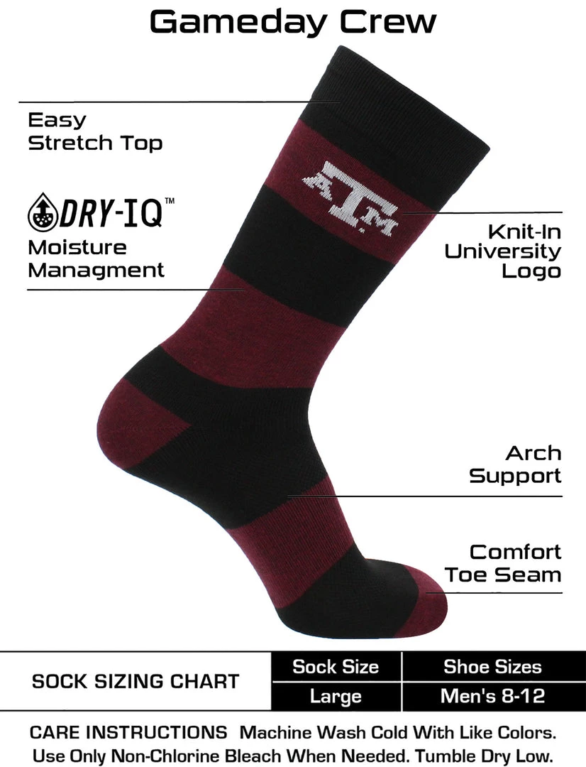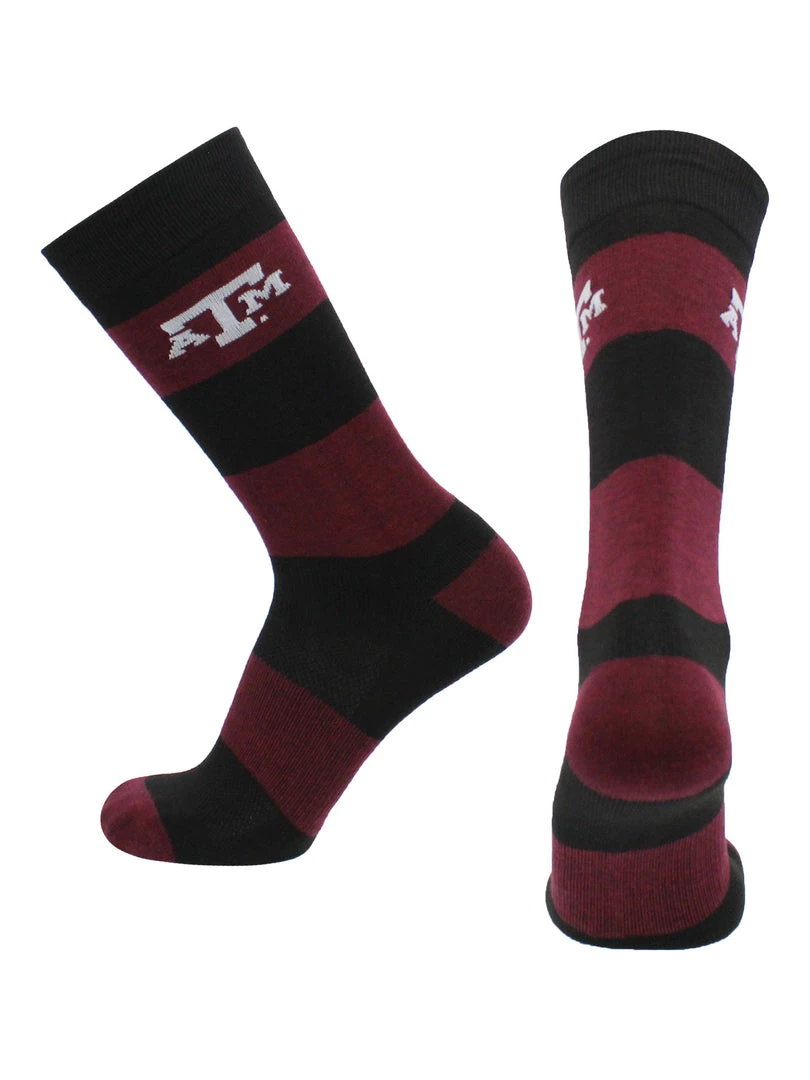 - COMFORT AND BREATHABILITY: These premium quality Texas A&M Aggies striped dress socks provide soft comfort. Moisture management technology pulls moisture and sweat away from skin.