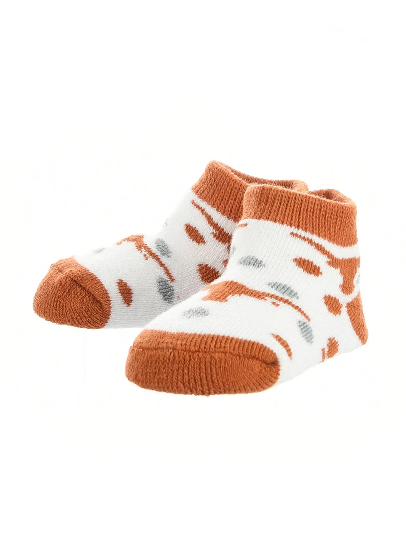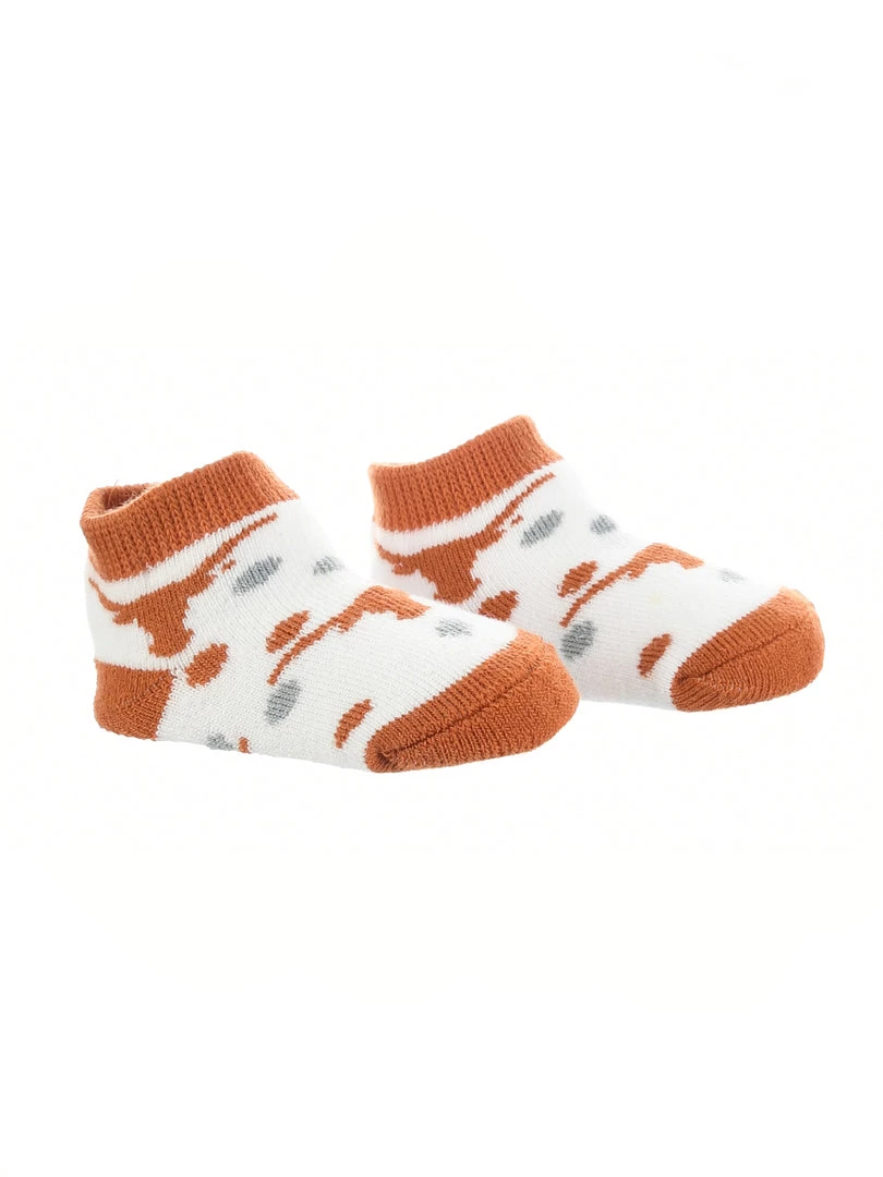 TCK Little Fan Low Cut Toddler Socks are soft and comfy. Get the little ones ready for gameday. If you are headed to the tailgate, game or cheering on the team from home, show off the school spirit! Offering an easy stretch top, soft comfortbale feel, and durability these high quality University of Texas Longhorns socks are an ideal gift for birthdays, stocking stuffers or baby showers. Toddler Size 2T-4T. Made of 98% Polyester, 2% Spandex. Hook Em Horns!