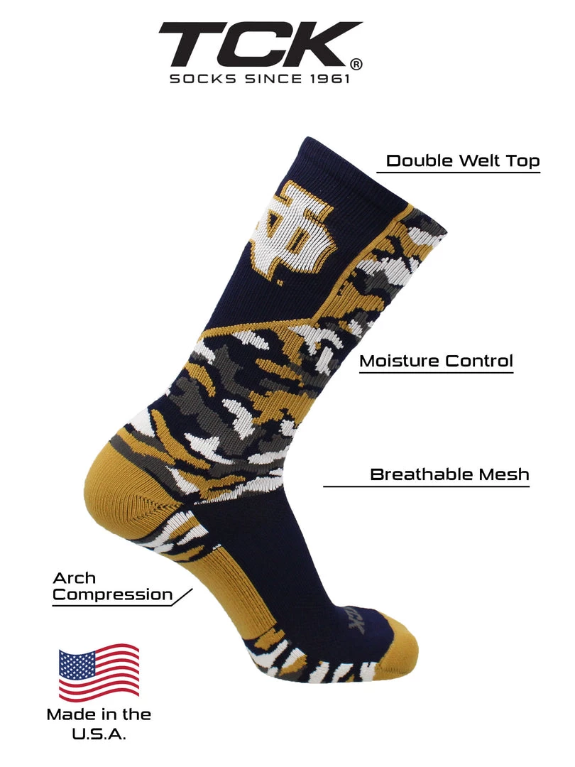 - COMFORT AND BREATHABILITY: These premium quality Notre Dame Socks provide soft comfort. Mesh panel ventillation above the foot allows for proper air flow. Keeping the feet dry. Moisture management technology pulls away moisture from skin.