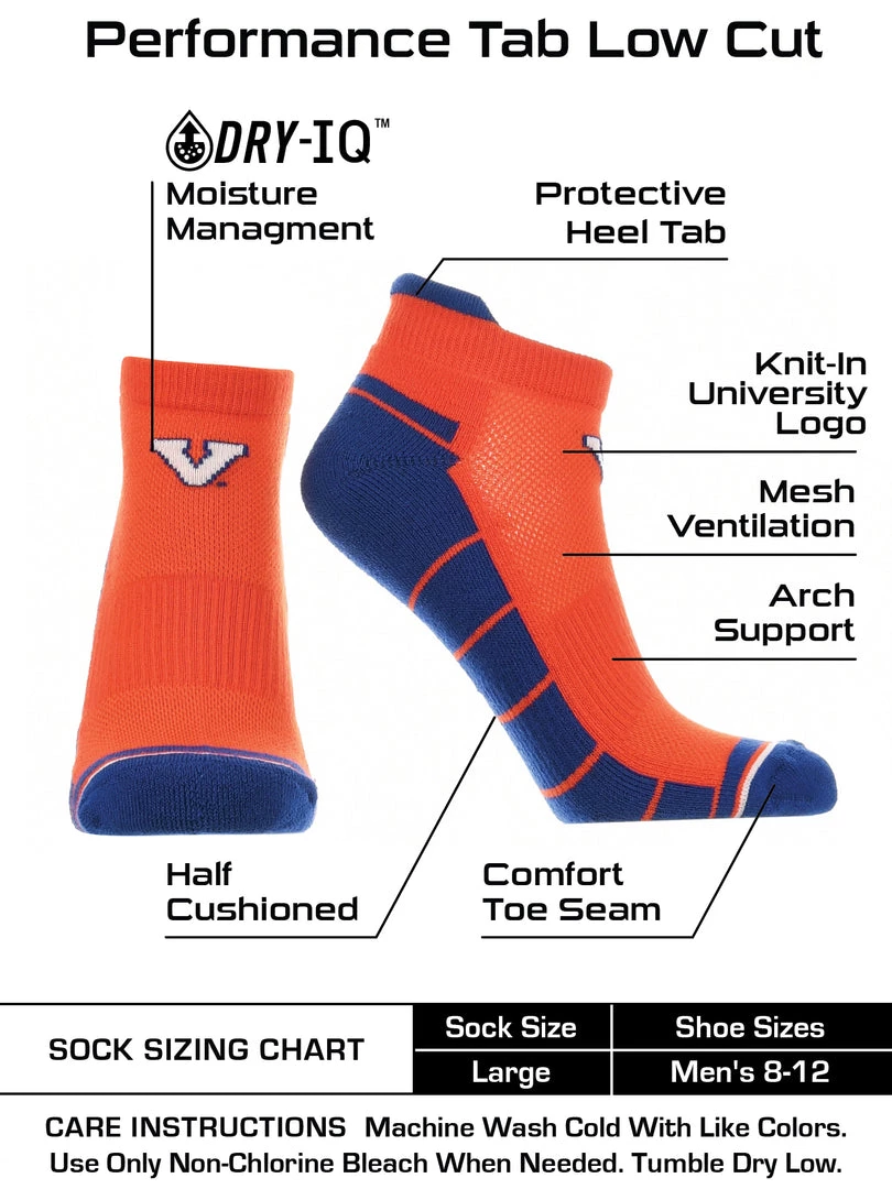 TCK No Show Performance Low Cut Socks are the perfect athletic ankle sock. Wear these to the tailgate party, working out, or lounge around the house.Offering comfort, breathability, performance, and durability these high quality University of Virginia Cavaliers socks are an ideal gift for Father’s Day, birthdays, stocking stuffers or going back to school. Made of 97% Polyester, 3% Spandex. Gear up for the big game! Go Wahoos!