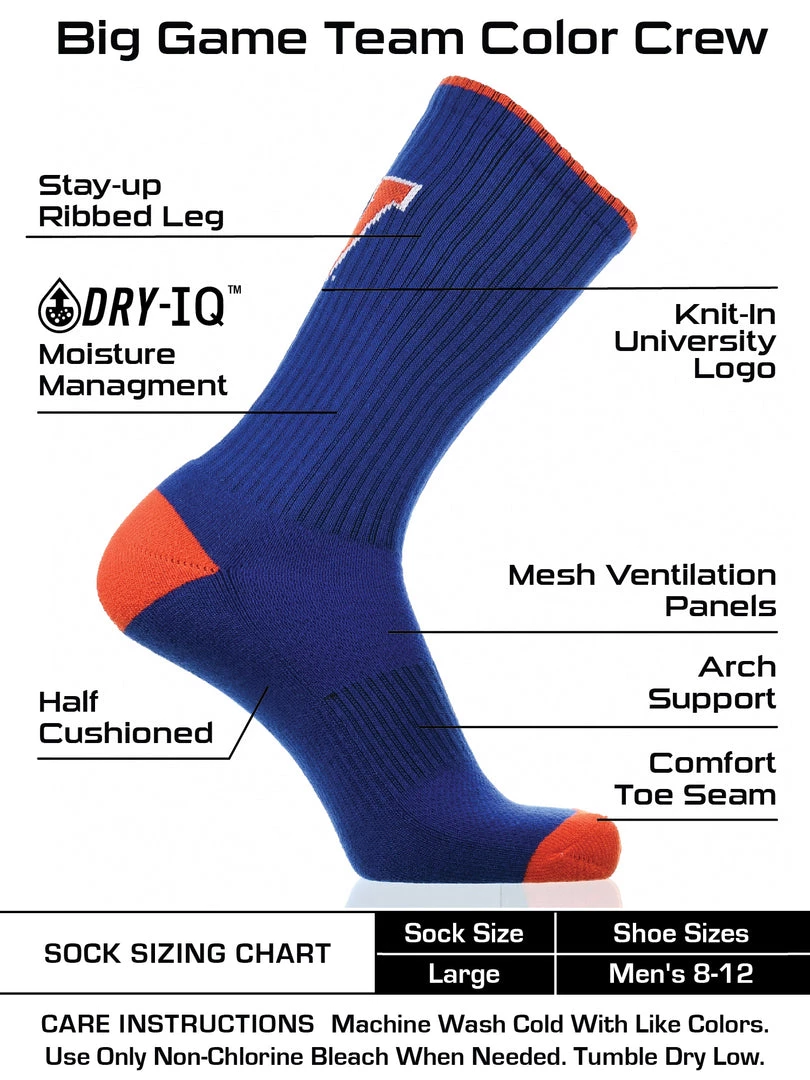 TCK Campus Legend performance socks are designed with superior construction and comfort. Perfect with sneakers and slides or even lace-ups and loafers, these socks bring versatility to your wardrobe no matter what the occasion. Offering comfort, breathability, performance, and durability these high quality University of Virginia Cavaliers socks are an ideal gift for Father’s Day, birthdays, stocking stuffers or going back to school. Made of 94% Polyester, 4% Rubber, 2% Spandex. Go Wahoos!