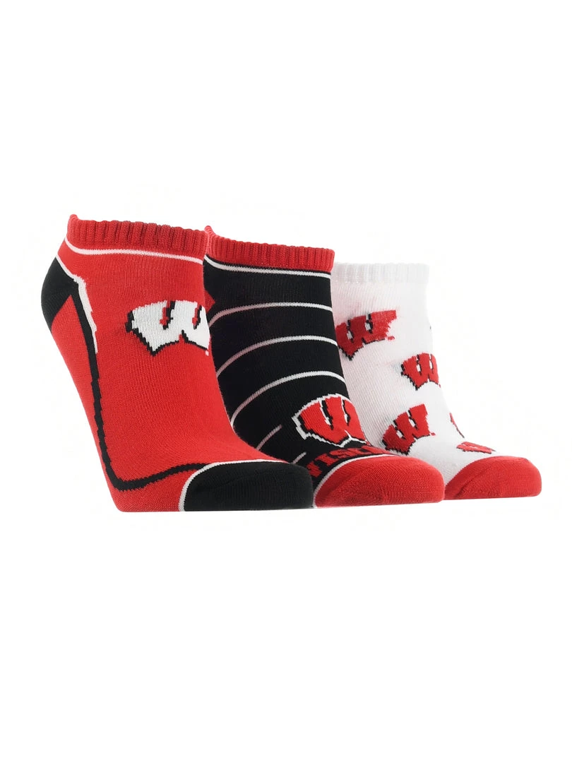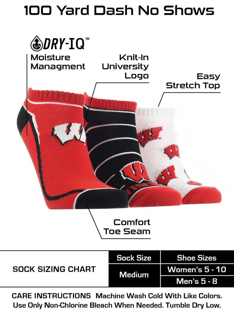 TCK Full Field, No Show Socks come with 3 pairs of comfy socks. Get ready to cheer on your favorite team during the season! Wear these to the tailgate party, working out, or lounge around the house.Offering comfort, breathability, and durability these high quality University of Wisconsin Badgers socks are an ideal gift for birthdays, stocking stuffers or going back to school. Made of 97% Polyester, 3% Spandex. Gear up for the big game! Go Badgers!