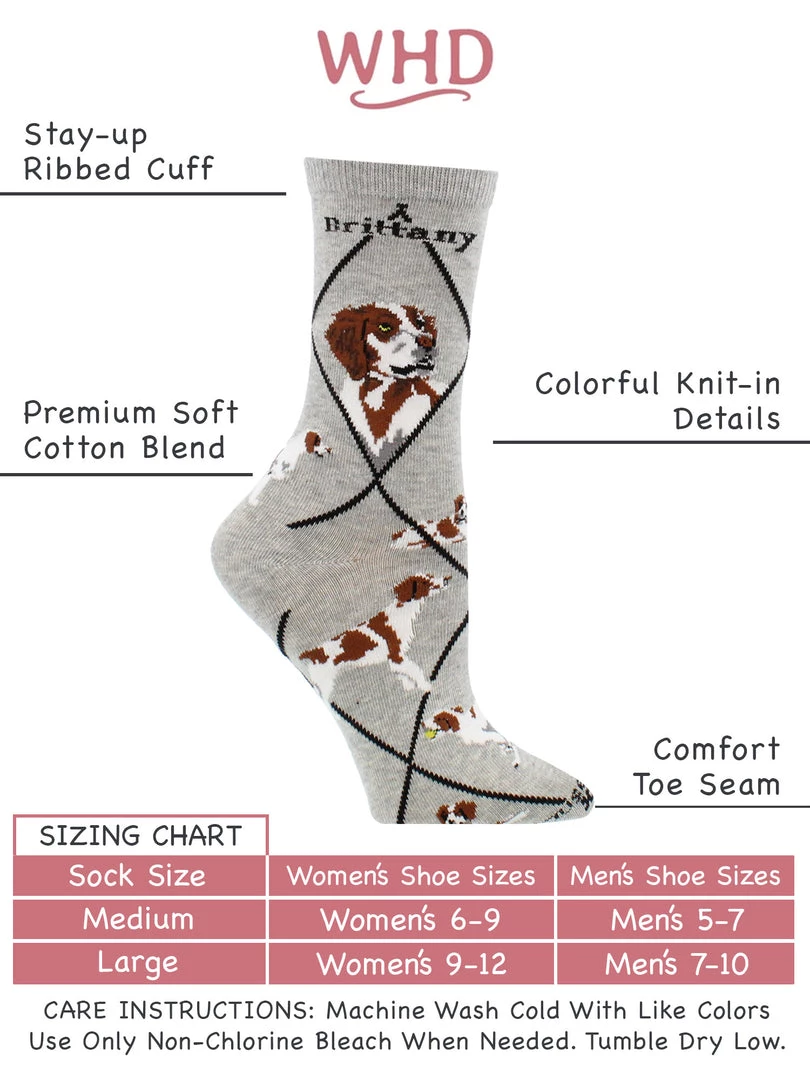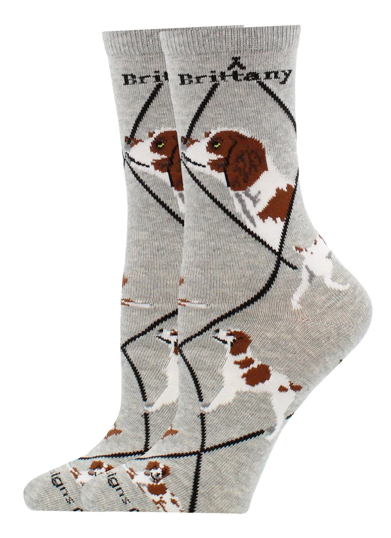 - PERFECT FOR DOG LOVERS – Incredibly intelligent and observant, the Brittany Spaniel will ensure that everything is in order and everyone is in their place! Your feet will find their home inside our adorable Brittany Spaniel crew socks.