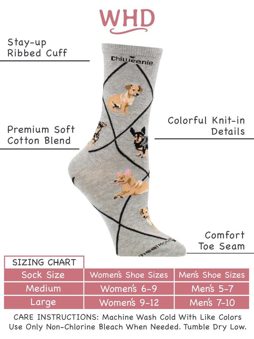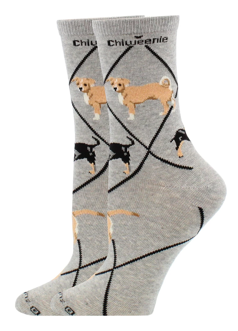 - PERFECT FOR DOG LOVERS – Chiweenies might be small but they have a huge personality! Wear your Designer Dog pride in this all-over comfy crew sock from Wheel House Designs featuring the adorable Chiweenie.