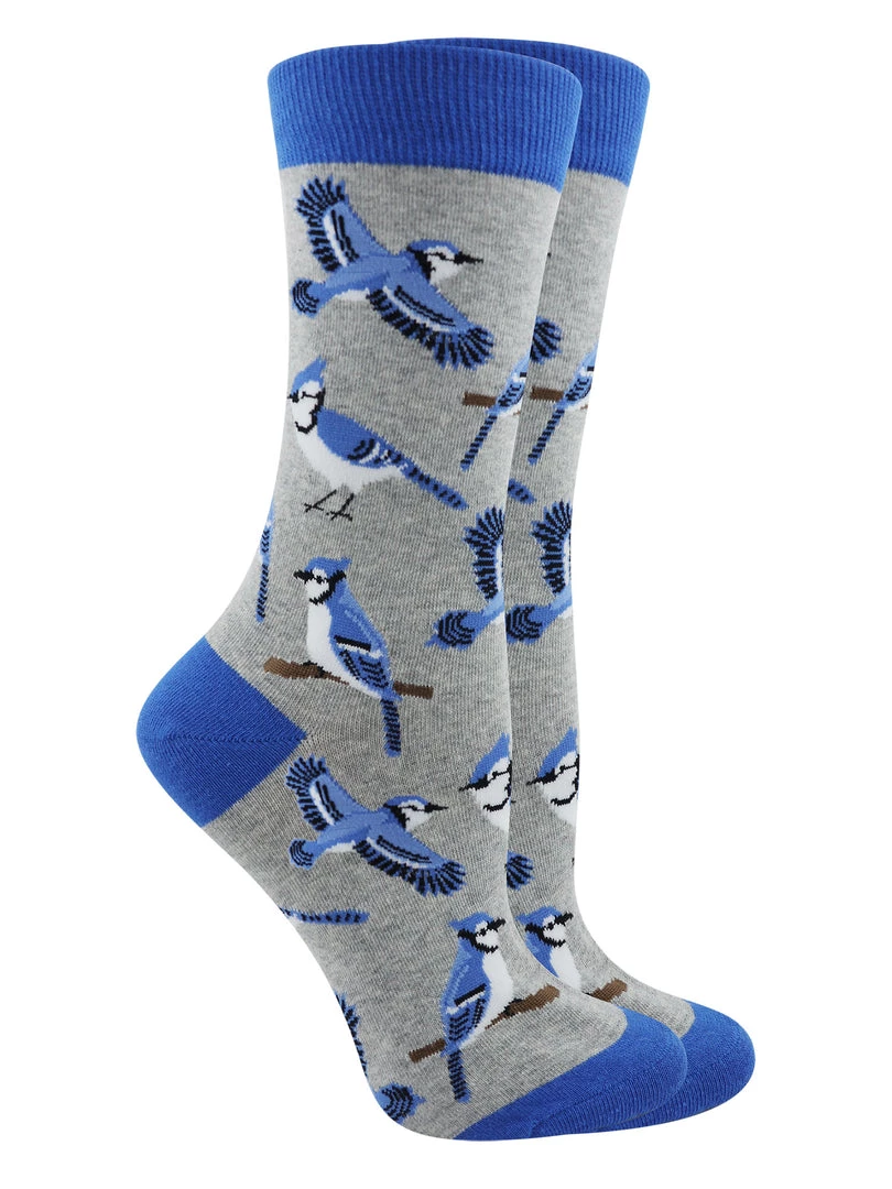 - PERFECT FOR BIRD LOVERS – The blue jay is a common, large songbird familiar to many people, with its perky crest; blue, white, and black plumage; and noisy calls. Show your love for this beautiful bird by wearing the Wheel House Blue Jay socks.