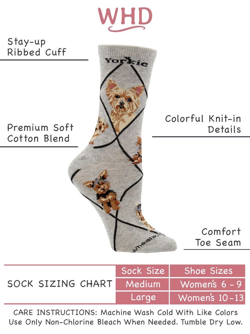 - PERFECT FOR DOG LOVERS – Some say that a Yorkshire Terrier was the inspiration for Toto in The Wonderful Wizard of Oz. Show that bond in the WHD crew sock that features a Yorkie Puppy design.