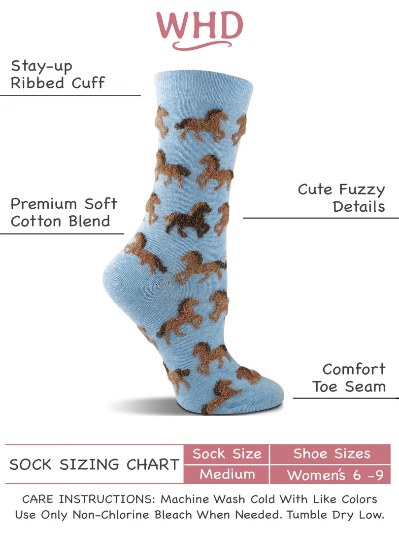 - For the girl or woman who likes to ride and strut her horse lover pride! These cute horse socks feature soft, fuzzy, feather horses that add a 3-dimensional look and feel.