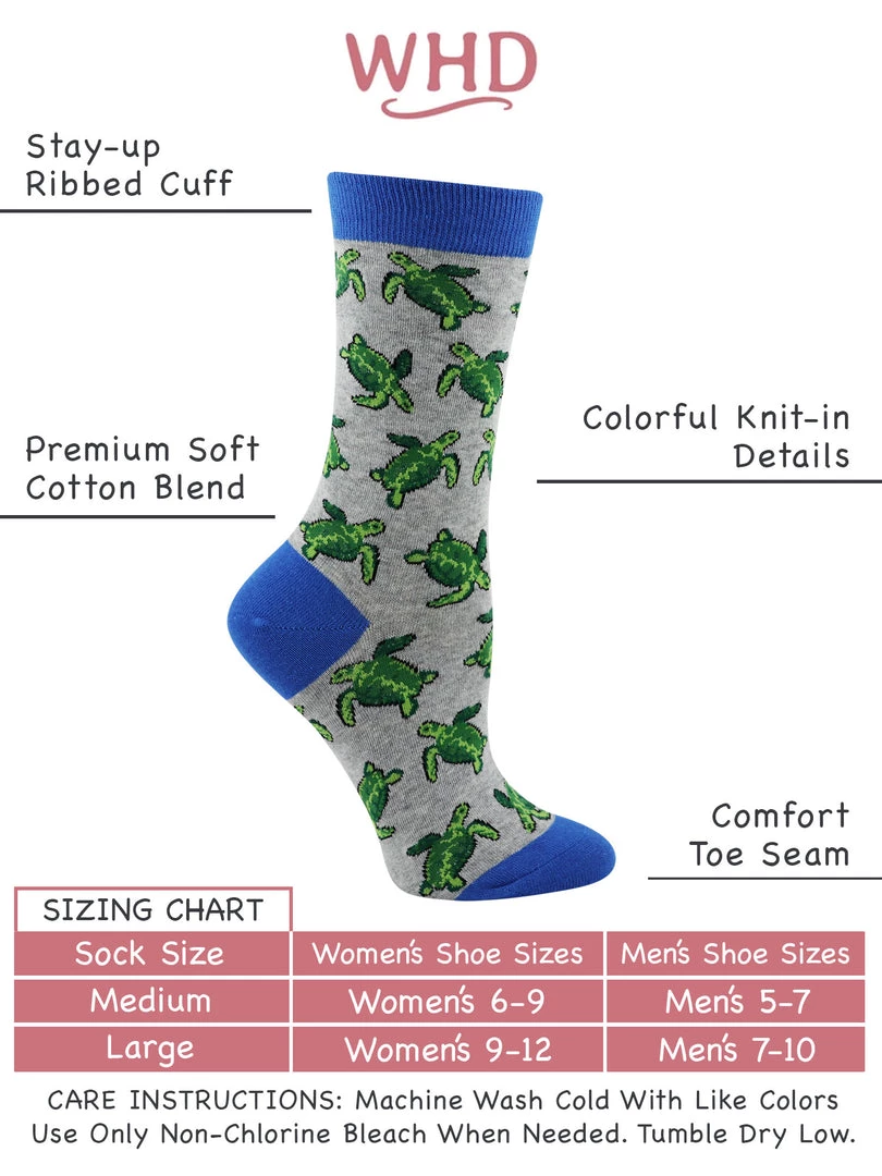 - PERFECT FOR TURTLE LOVERS – Sea Turtles enjoy life to the fullest as they begin their intrepid journey from birth to an ocean home. Wheel House Designs Sea Turtle crew socks make every day fun and special.
